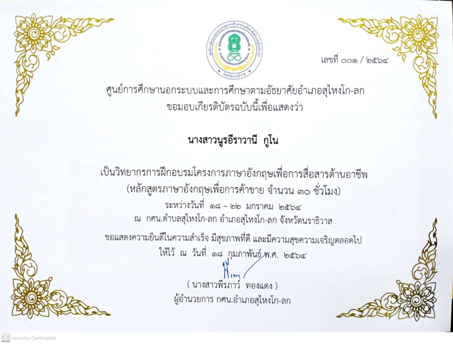 วิทยากรการฝึกอบรมโครงการภาษาอังกฤษเพื่อการสื่อสารด้านอาชีพ (หลักสูตรภาษาอังกฤษเพื่อการค้าขาย)