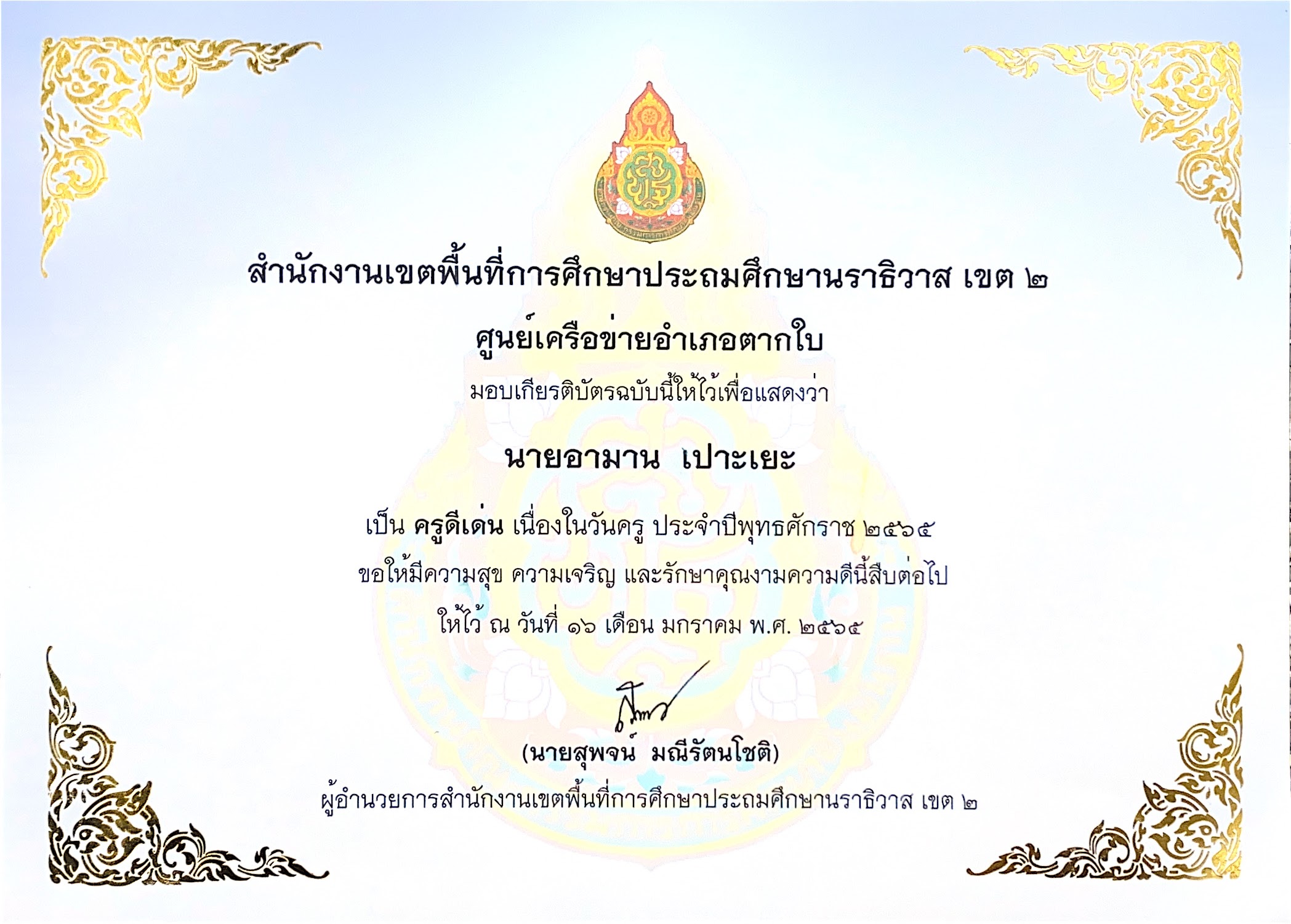 รางวัลผู้บริหารดีเด่น เนื่องในวันครู ประจำปีพุทธศักราช 2565
